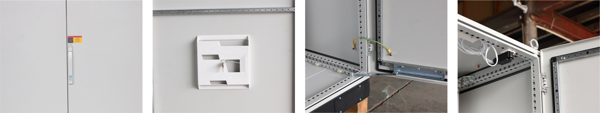 5、机柜标配吊环,门限位,照明灯、灯开关、档案袋;